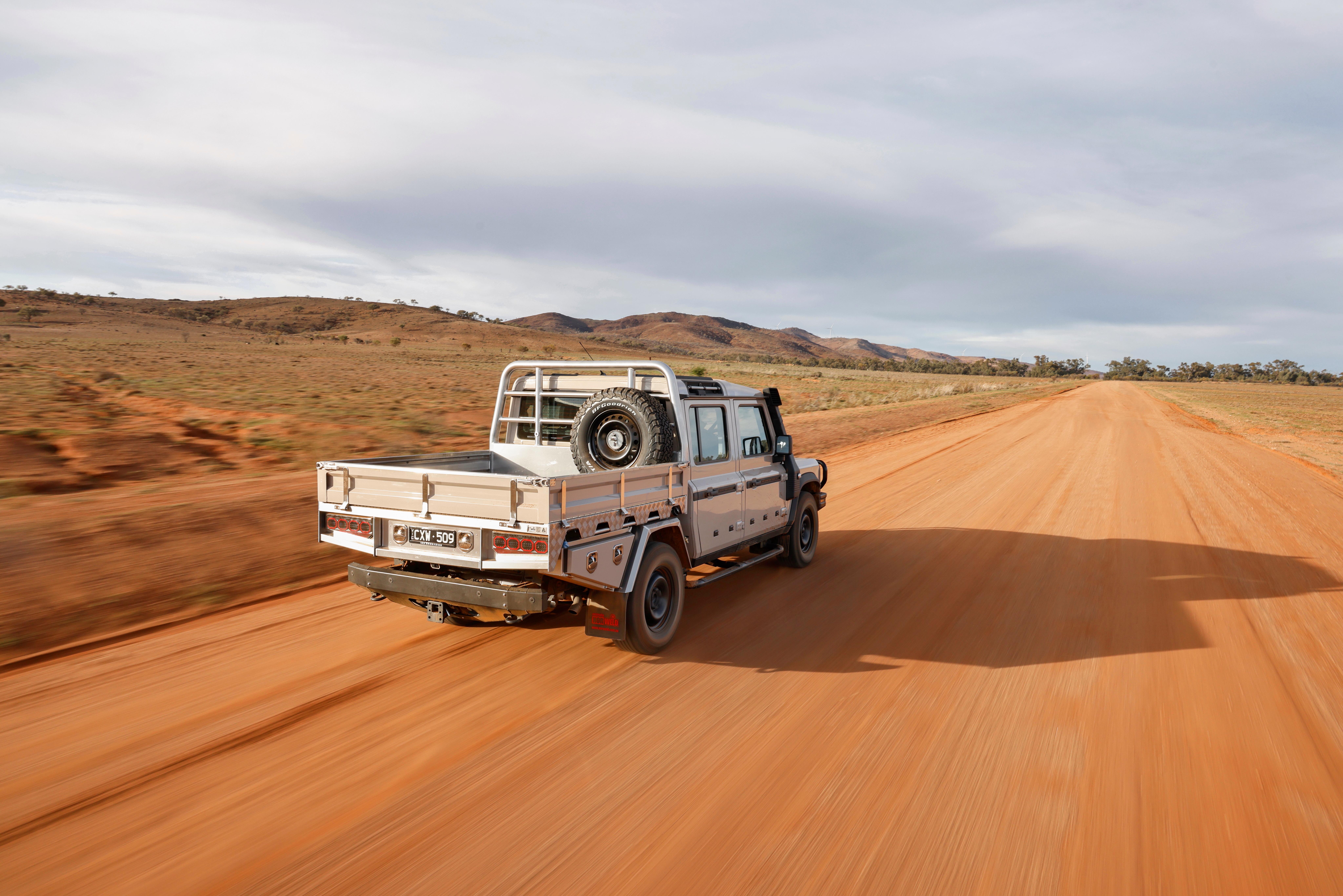 Ineos claims the Grenadier Quartermaster Cab Chassis boasts 264mm of ground clearance and an 800mm wading depth, while retaining the standard ute’s 3500kg braked towing capacity.