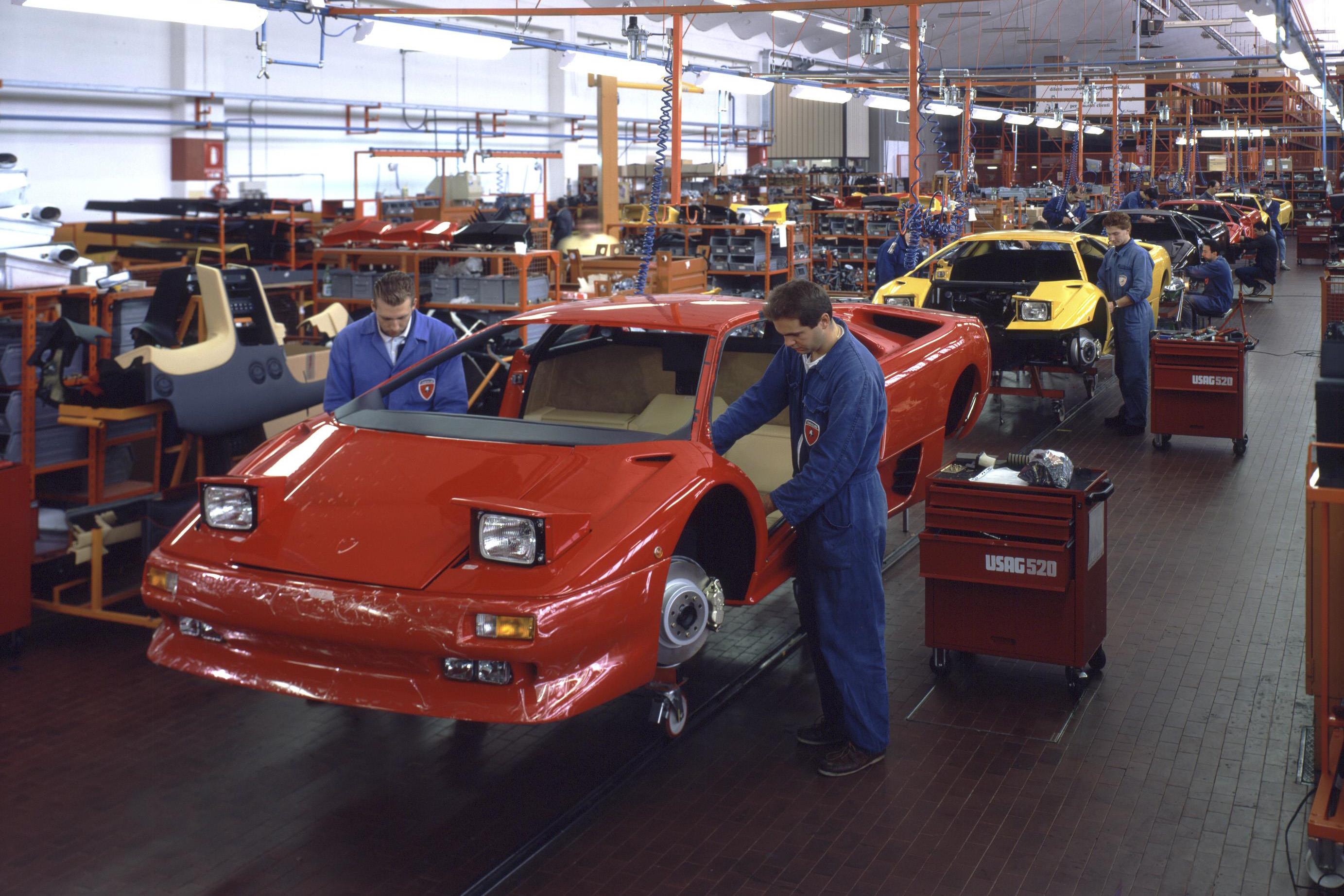 Once in bed with the US giant, Lamborghini refined the design of the Diablo to add “harmony and a future-oriented vision”, resulting in the supercar’s distinctive scissor doors, muscular proportions, and striking rear-end, to go with its improved cabin comfort.