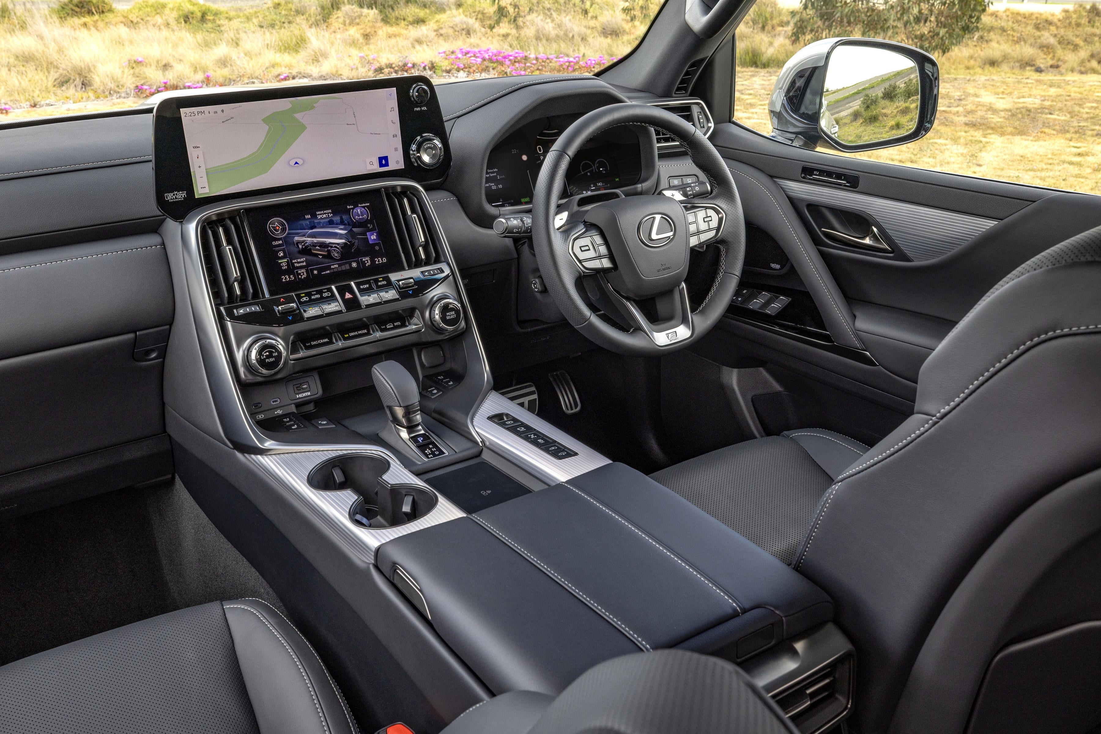 Lexus says it chose a “performance” parallel hybrid system in order to “retain the driveline strength” of its turbo-diesel and petrol LX siblings, as well as maintain the LX’s 3500kg braked towing capacity, full-time four-wheel drive system and low-range gearing.