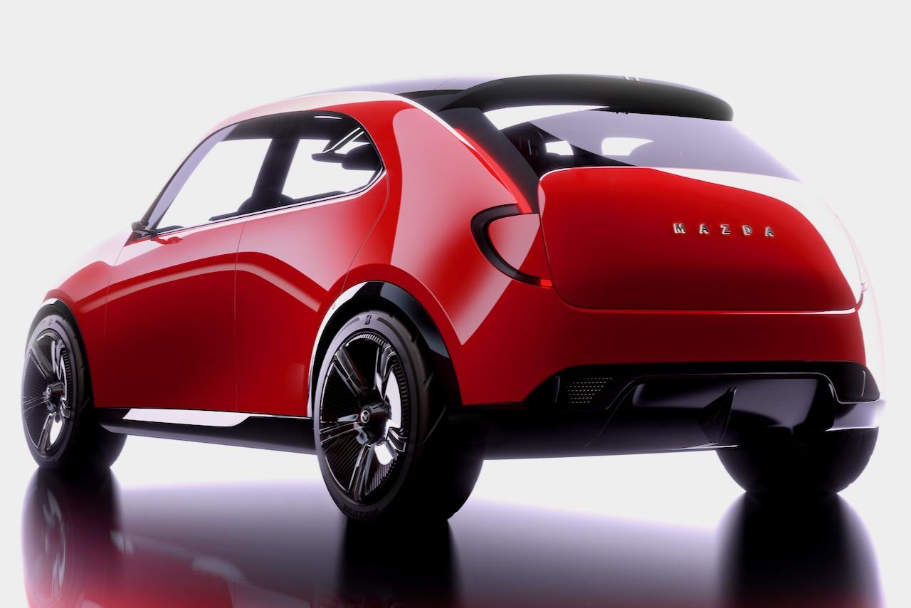 Curiously, the city car concept is shorter than the current five-door Mazda 2 – at 3825mm long, versus 4085mm – but is 100mm wider.