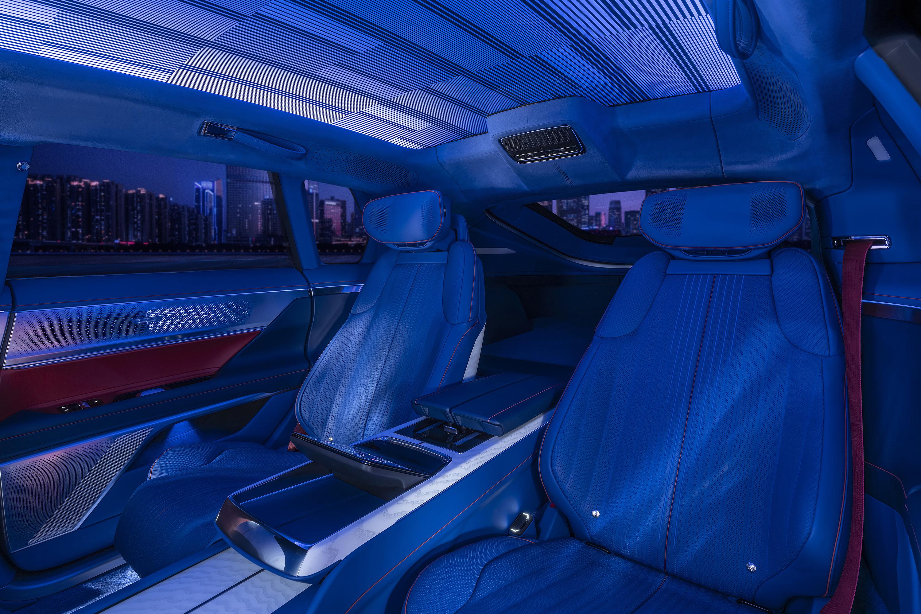 The cabin is swathed in leather and hand-finished metalwork, and standard equipment includes a 38-speaker AKG Studio Reference Audio System, active noise cancellation, and four-zone climate control, along with heating, cooling and ventilation for all four seats plus heated armrests and a “neck scarf” feature.