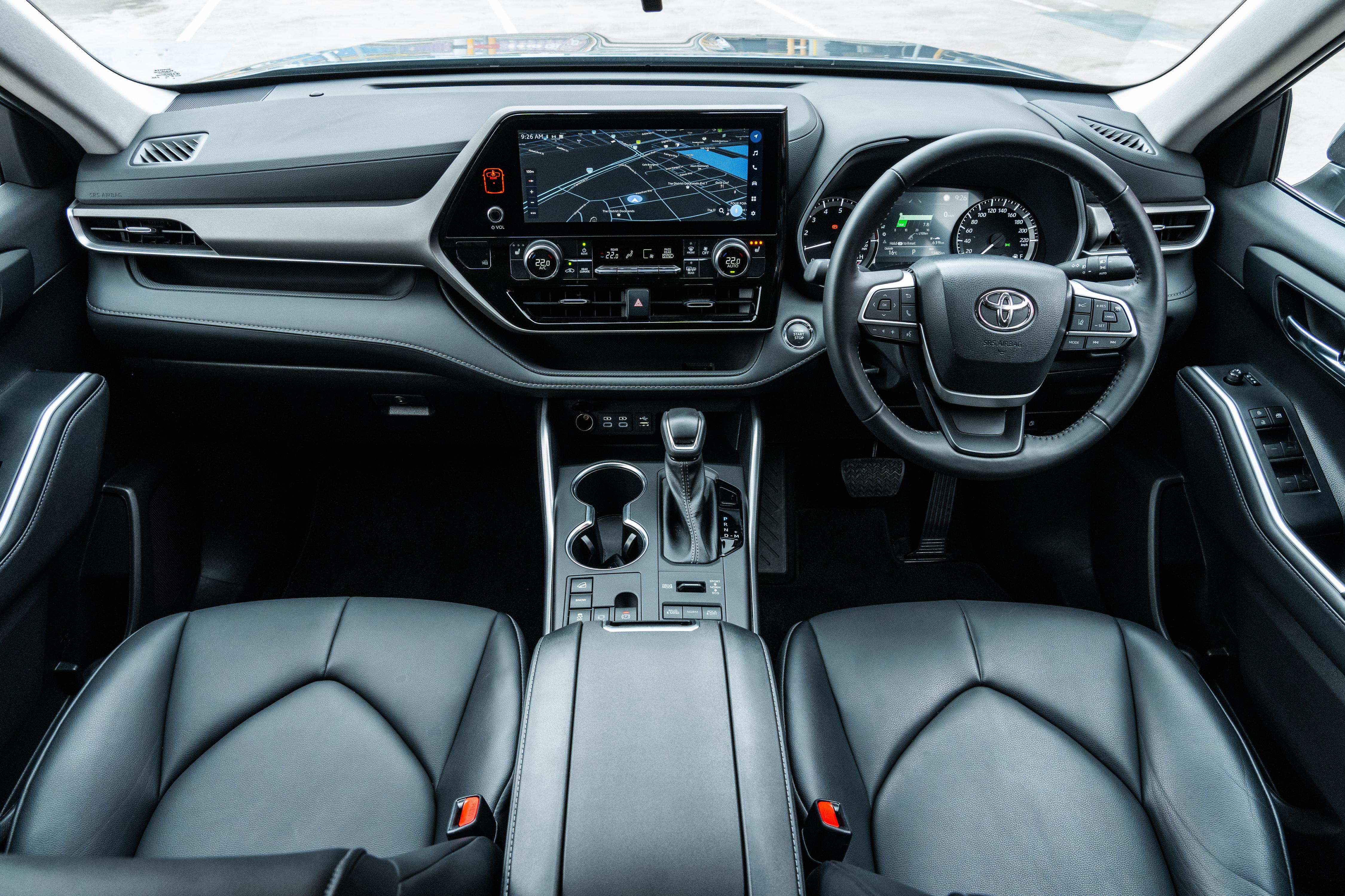The overall look and feel of the Kluger is cheaper, which is not surprising for a base-level variant and considering its age, and the fact you have to jump all the way to the Grande to get things like a head-up and leather seat trim. Navigation and electric seat adjustment are also missing from the Toyota.