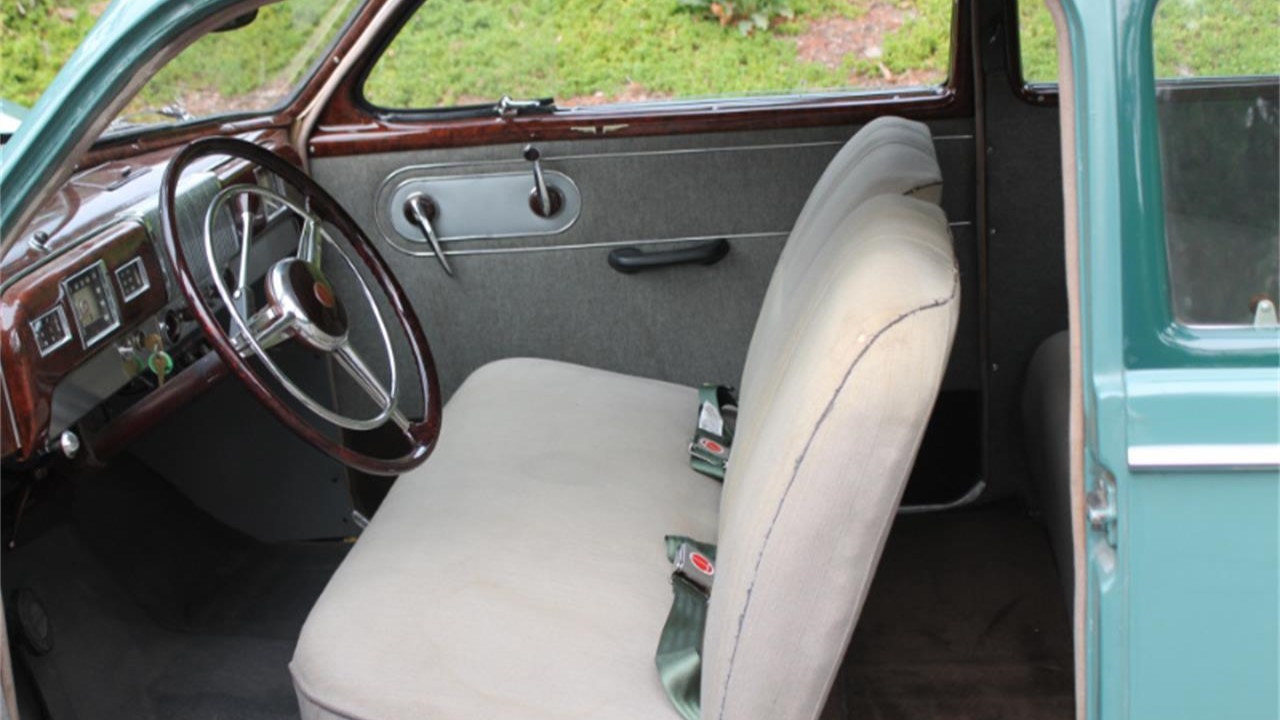 You can see those elements in this 1940 Commander, which slotted in between the less expensive Champion and the more upscale President. Originally finished in Clipper Gray, it was repainted in a factory shade of green, which appears to be Colleen Green Light. The interior is a mixture of 1940s and now. According to the selling dealer, the light gray cloth seat upholstery is original. While it does show certain signs of use and age, it has held up remarkably well for being 85 years old. If the door panels and window surrounds look new, it’s because they are. The same goes for the steering wheel’s wood-look plastic rim, which coordinates with the refurbished dashboard top and fascia.