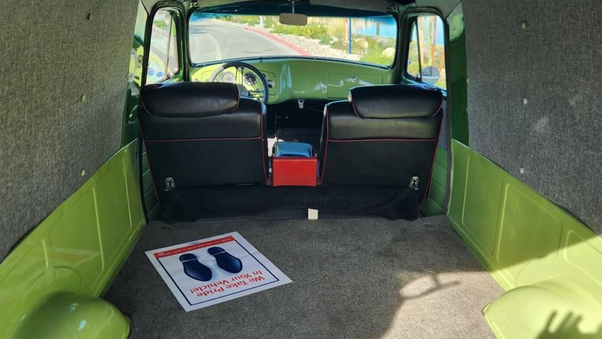 As attractive as the mid-century exterior is, the real magic of this classic truck is found in its versatility: the rear doors open up barn-style to reveal a cavernous cargo compartment. Think of the many possibilities for service agencies, mobile businesses, and local deliveries. According to specifications mentioned online, the 3100 panel truck has 150 cubic feet of cargo space. As an added bonus, it can accommodate items up to 10 feet in length alongside the driver. Home Depot lumber runs would be a total breeze.