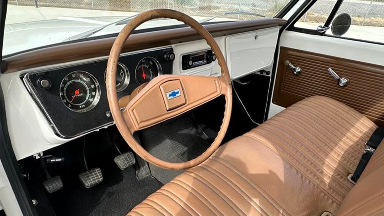 According to the selling dealer, this C10 “has been kept all original over the years, except a repaint in the original color white,” which pairs nicely with the tan interior.