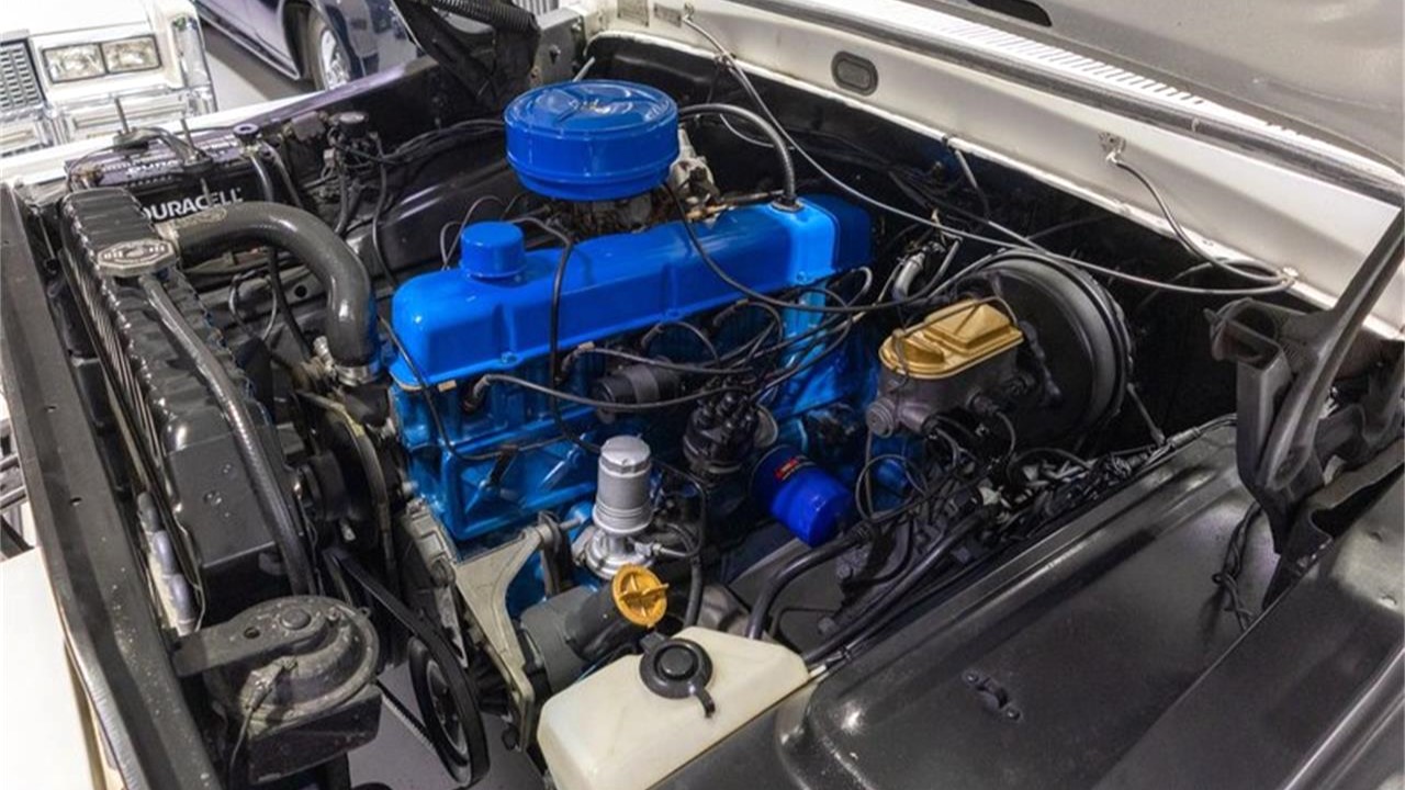 Despite starting as a work truck (with some sweet employee perks), this F-250 has some surprising features. Although there’s not a V8 under the hood, the one-barrel 240ci inline-six is connected to an automatic transmission. A closer look shows this truck not only has power brakes, but also power steering as well. In addition, the roof can be folded open to let in a breeze or closed to keep out the elements.