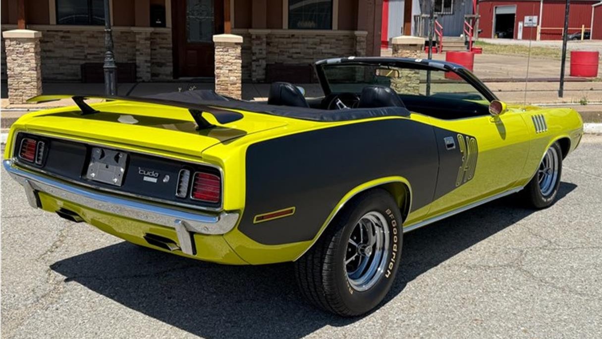 The 1971 Plymouth ‘Cuda convertible is one of the most desirable muscle cars, and one sprayed in Curious Yellow likely would command a premium. Truth be told, this example was originally painted in “GF7” Sherwood Green metallic with a white interior and top. However, check out the other options and you’ll see this car would be hot no matter what color: 340 four-speed, Shaker hood, rear wing, Rallye dashboard, and more. Aside from the color, Billboards and “A21” Elastomeric Front Bumper complete the package to make this car look as hot as a Barracuda could be. “The underside is just as gorgeous as the top, every brake/fuel line is new or redone. All suspension is painted or powder coated,” says the seller. “Everything works! Every light, every gauge, wipers and window washers, radio, horn, etc.”