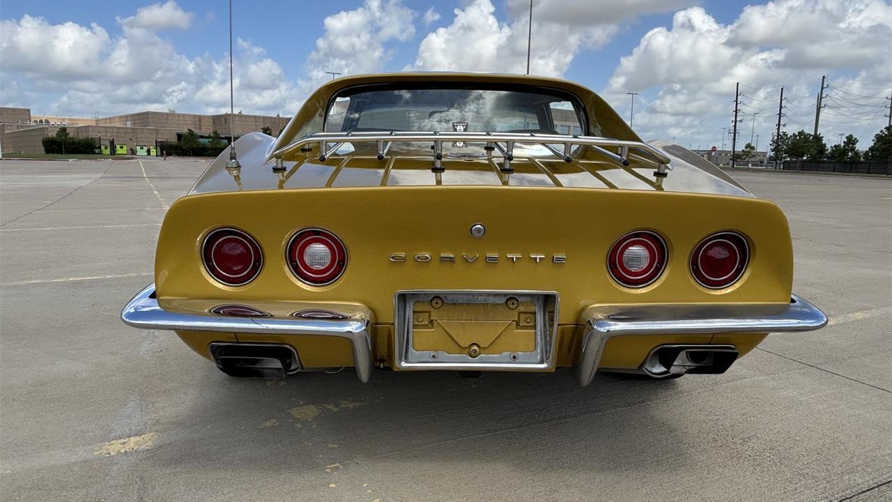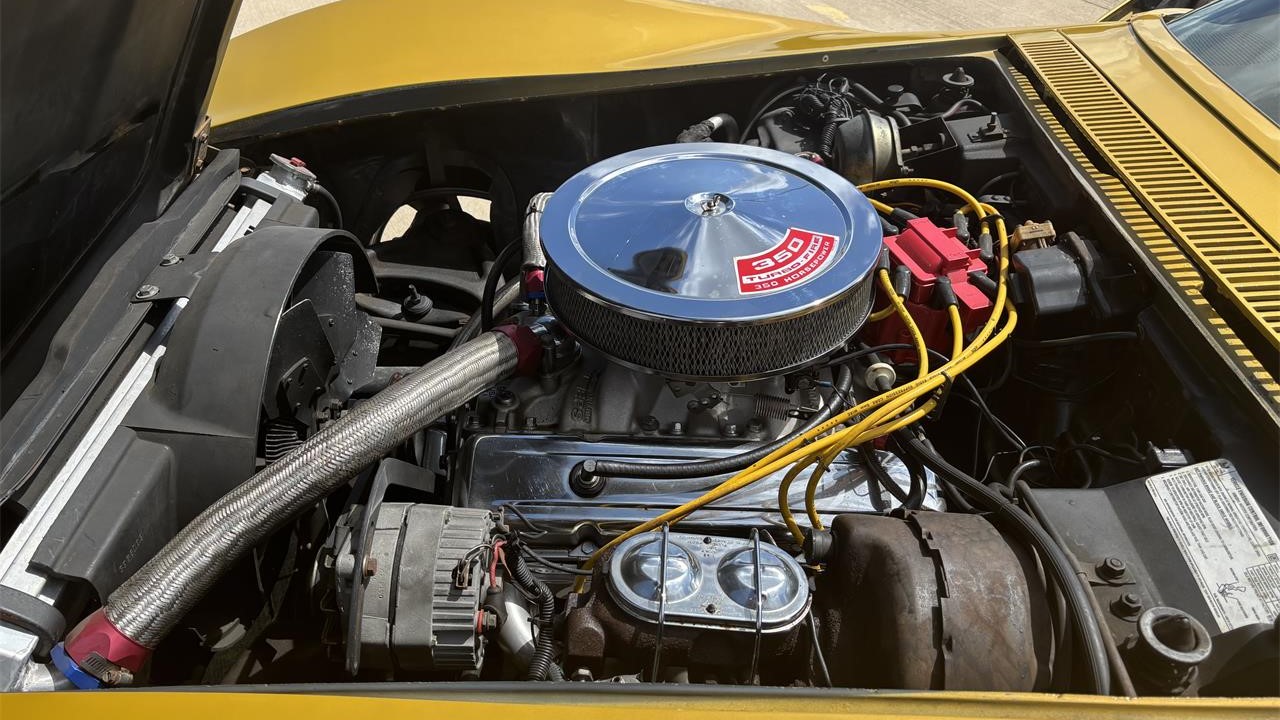 We see a lot of C3 Corvettes around here, what caught my eye the most about this one was that striking color. While initially thought to be custom job, it is in fact a factory shade that Chevrolet named “War Bonnet Yellow” (code 989). The color was only offered for model years 1971 and 1972, and it’s a unique metallic gold-yellow that seems to shift its appearance in different types of lighting. Adding to the exterior appeal of the C3, we find a set of American Racing polished aluminum wheels, color-matched removable T-tops, a luggage rack, and rocker moldings.