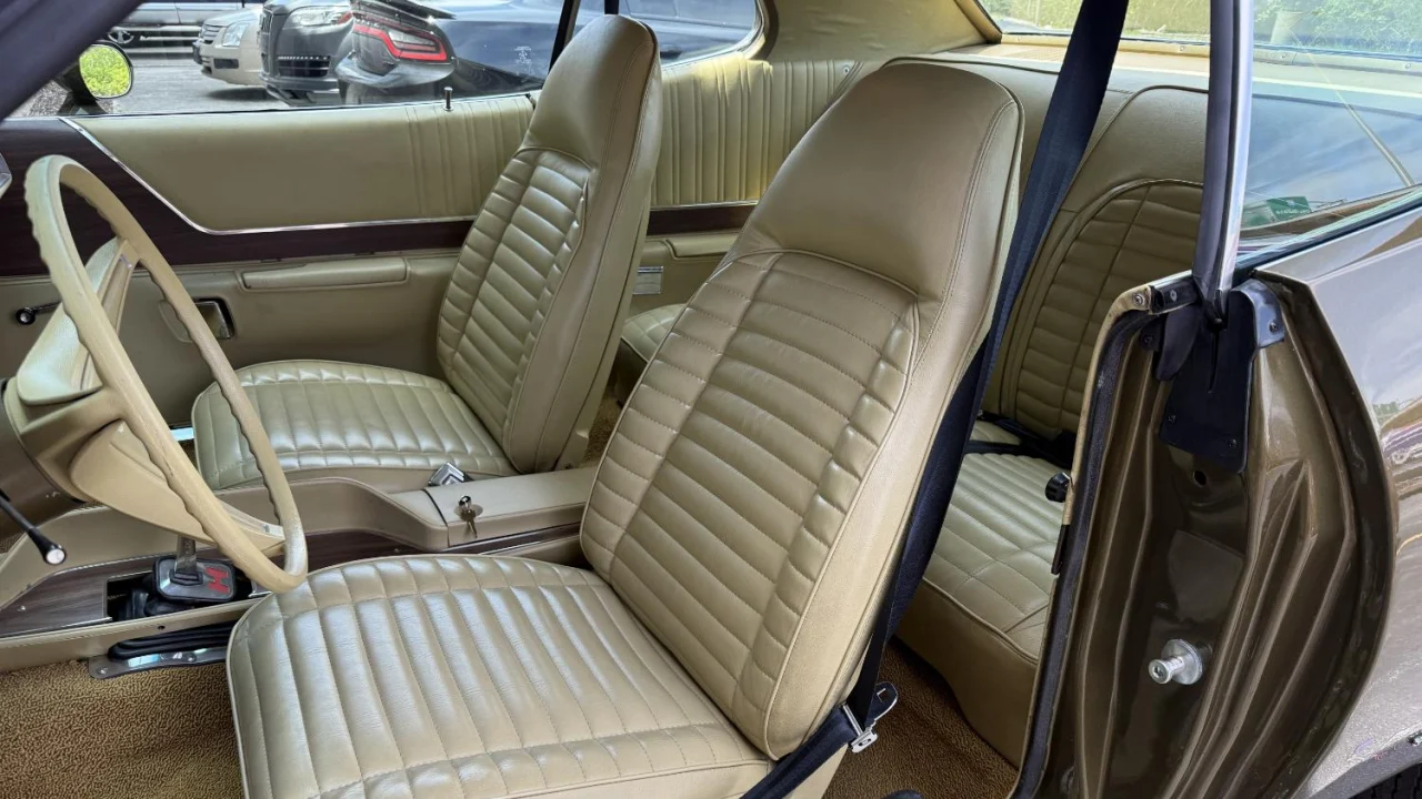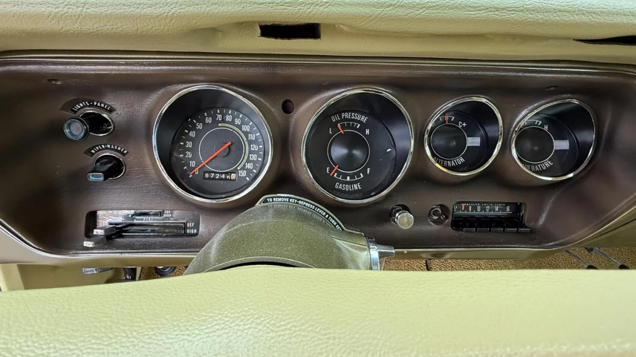This “GY9” Tawny Gold 1972 Plymouth Road Runner GTX is one of 219 U.S.-spec Road Runners built with the 440 four-barrel and four-speed. Yes, the compression is low, but that doesn’t mean this car isn’t a scorcher—plus it runs just fine on unleaded premium. “Fresh restoration on solid-body car,” says the seller. “Documented with Chrysler Corporation and dealer invoices, being sold new from Schoenhals Motor Sales, Inc. in Imlay City, Michigan.” Features include a 440 with 0.30 overbore plus aluminum heads, Gold buckets, a center console, the Décor Group, power steering and brakes, the Rallye instrument cluster, an AM/FM radio, the “N96” Air Grabber, black Strobe striping (though the invoice originally specifies gold), and 14-inch Rallye road wheels, among other items.