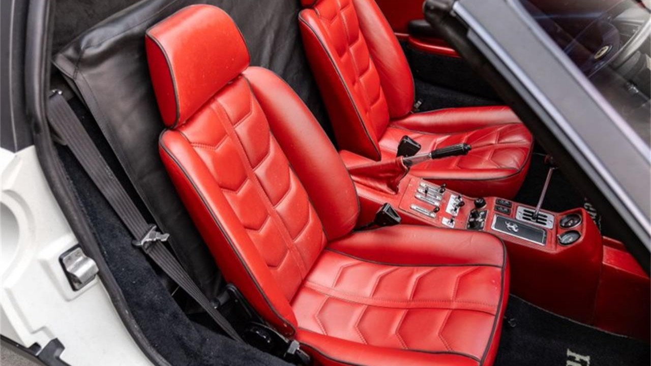 This 10,634-mile 1983 Ferrari 308 GTS Quattrovalvole catches the eye for several reasons: it’s not your classic Rosso Corsa red, the interior is not black, and it features unusual Boxer trim that was available for several years in the 1980s. Altogether, this car looks fabulous and unlike most 308s you see. “An Amazing find! Long-term single-owner 308 GTS Quattrovalvole in rare Bianco/Nero Boxer with Rosso interior,” says the seller. “Highly original example with low miles and clean CARFAX history report.” Originally delivered in Miami in July 1983, this vehicle remained with the original owner until 2015. The last major “belt service” was reportedly performed in 2015 at 10,500 miles. Options include air conditioning, heated rear window, Blaupunkt radio, targa top cover, tool roll, and more.