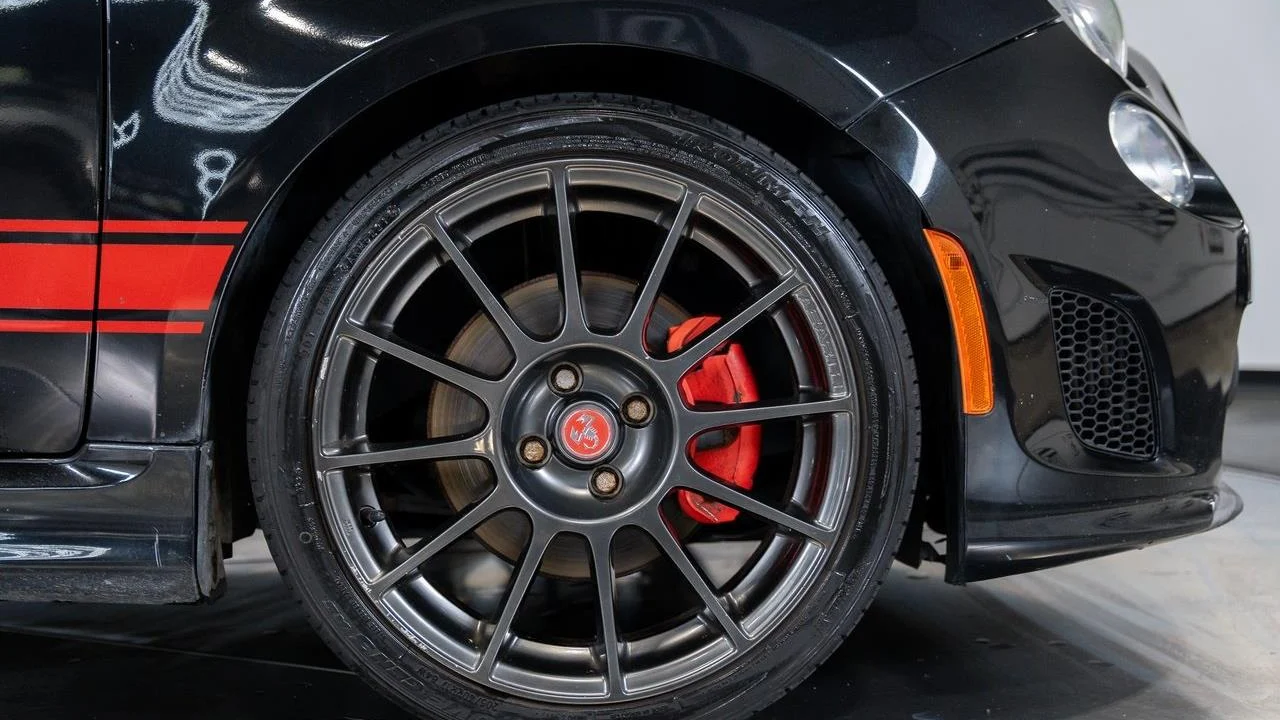 The dealer describes this 500 Abarth as an original 79k mile car that is in excellent condition. The car is finished in Nero paint with Red Abarth side stripes. The 500 Abarth is also equipped with the Safety and Convenience Packages and factory 17-inch forged aluminum Hyper Black wheels. The exterior of the car looks to be in great shape and in original condition with no add-ons.