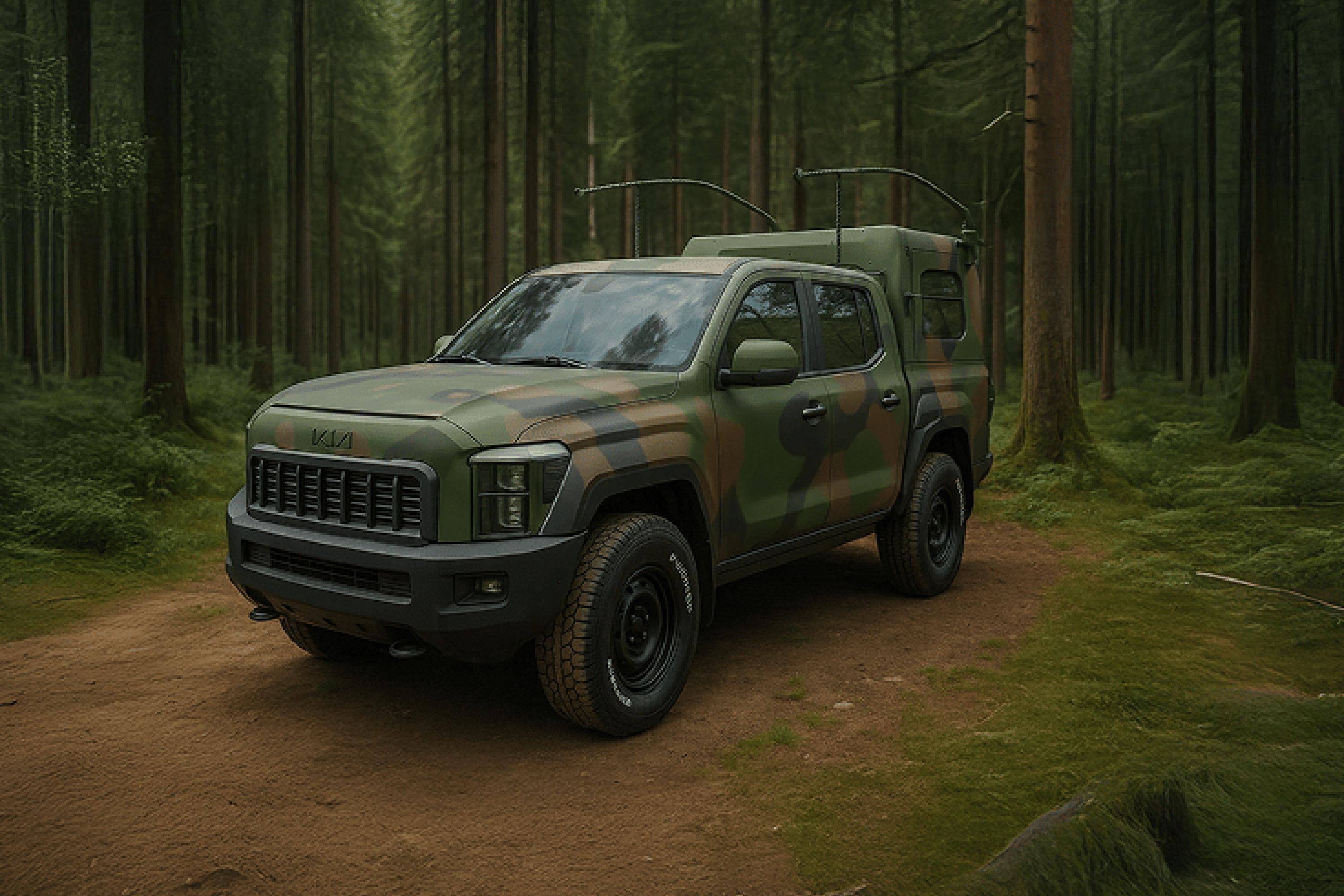 Two digital renders of a rebodied Tasman have appeared on the Kia Special Vehicles page spruiking military uses and conversions for the company’s first passenger-oriented ute.