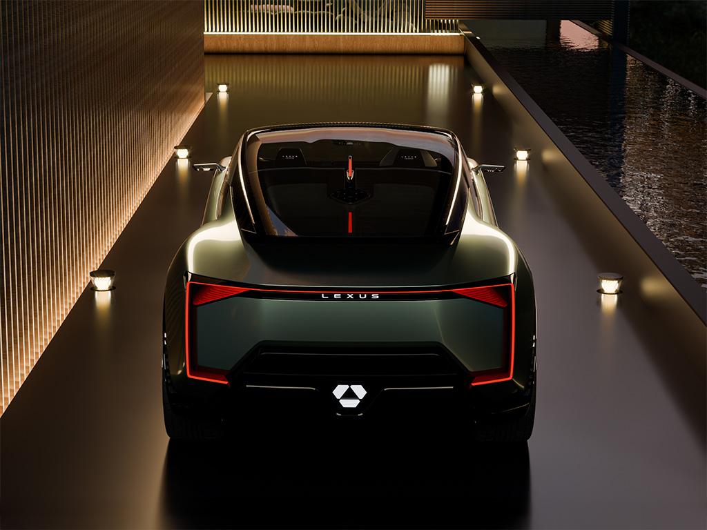 The crisp, angular exterior design includes a simpler take on the current Lexus spindle grille using LED lighting and illuminated ‘Lexus’ lettering and prominent, angular lower sections.