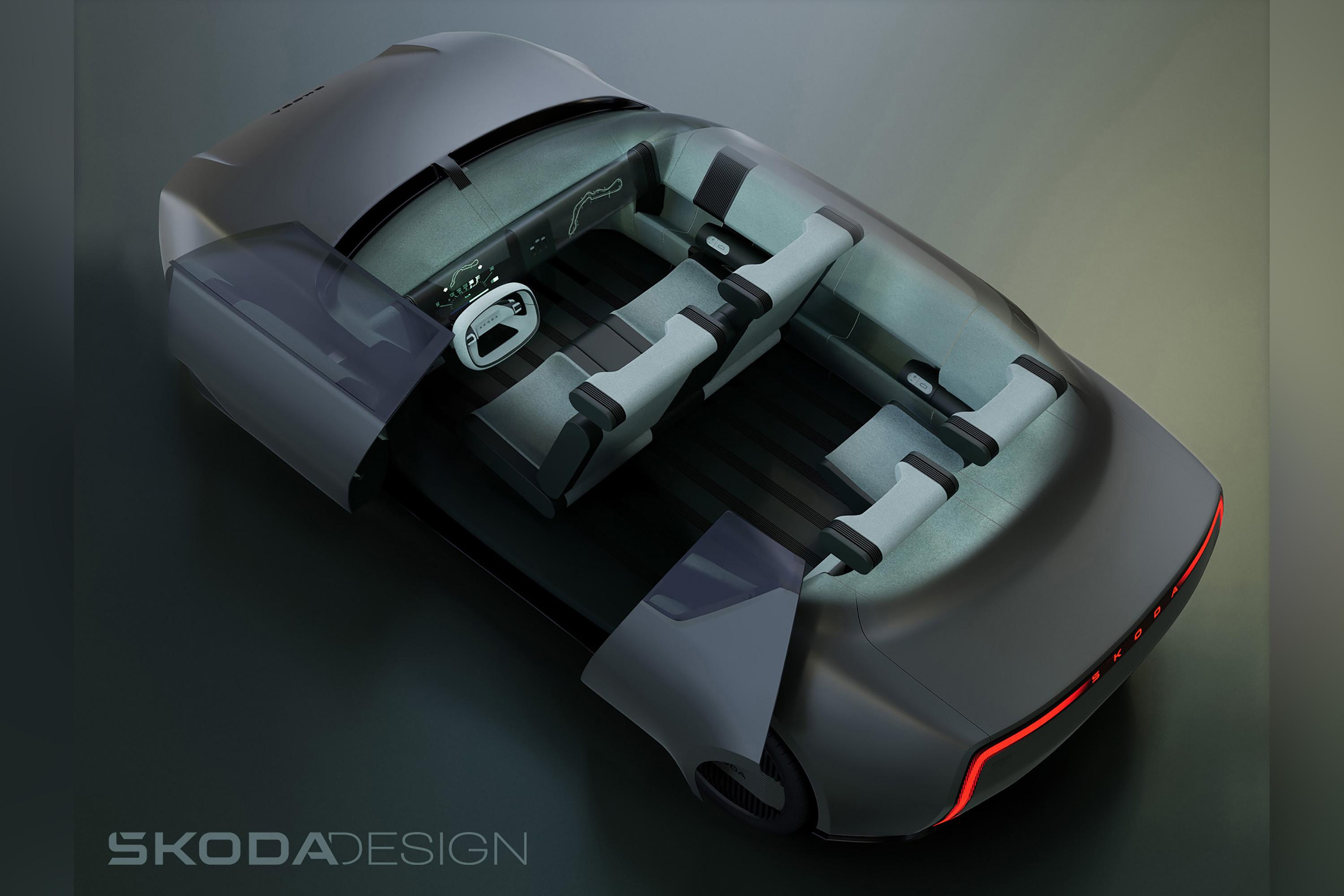 Just two people from Skoda’s design team worked on the project. Antti Savio, the concept’s exterior designer, studied a number of brutalist buildings before diving into this concept.