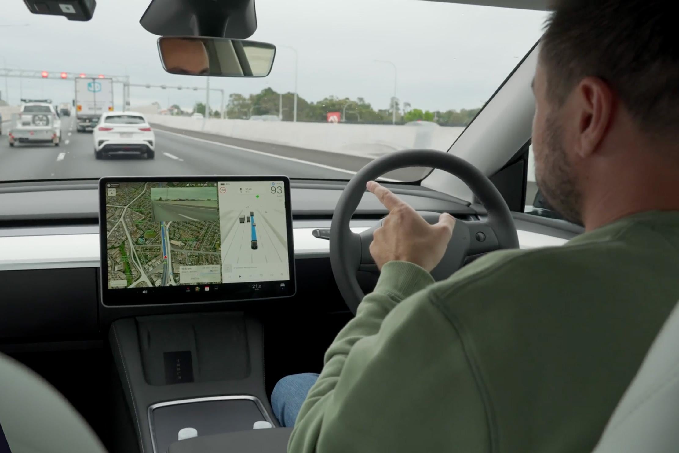 Full Self-Driving isn’t perfect. It crossed an unbroken white line once, sometimes changed lanes too late, and on one occasion tried to send me up an off-ramp even though the navigation was set to have me continue along the motorway.