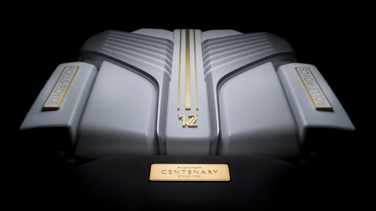 Even the “RR” badges got their own special treatment of 24-carat gold and white enamel. Up front, the Spirit of Ecstasy was redone in the style of the first one ever installed on a Phantom and made out of solid 18-carat gold, then covered in tarnish-resistant 24-carat gold. Under the hood, the 6.75-liter V12 features an Arctic White cover with 24-carat gold accents.