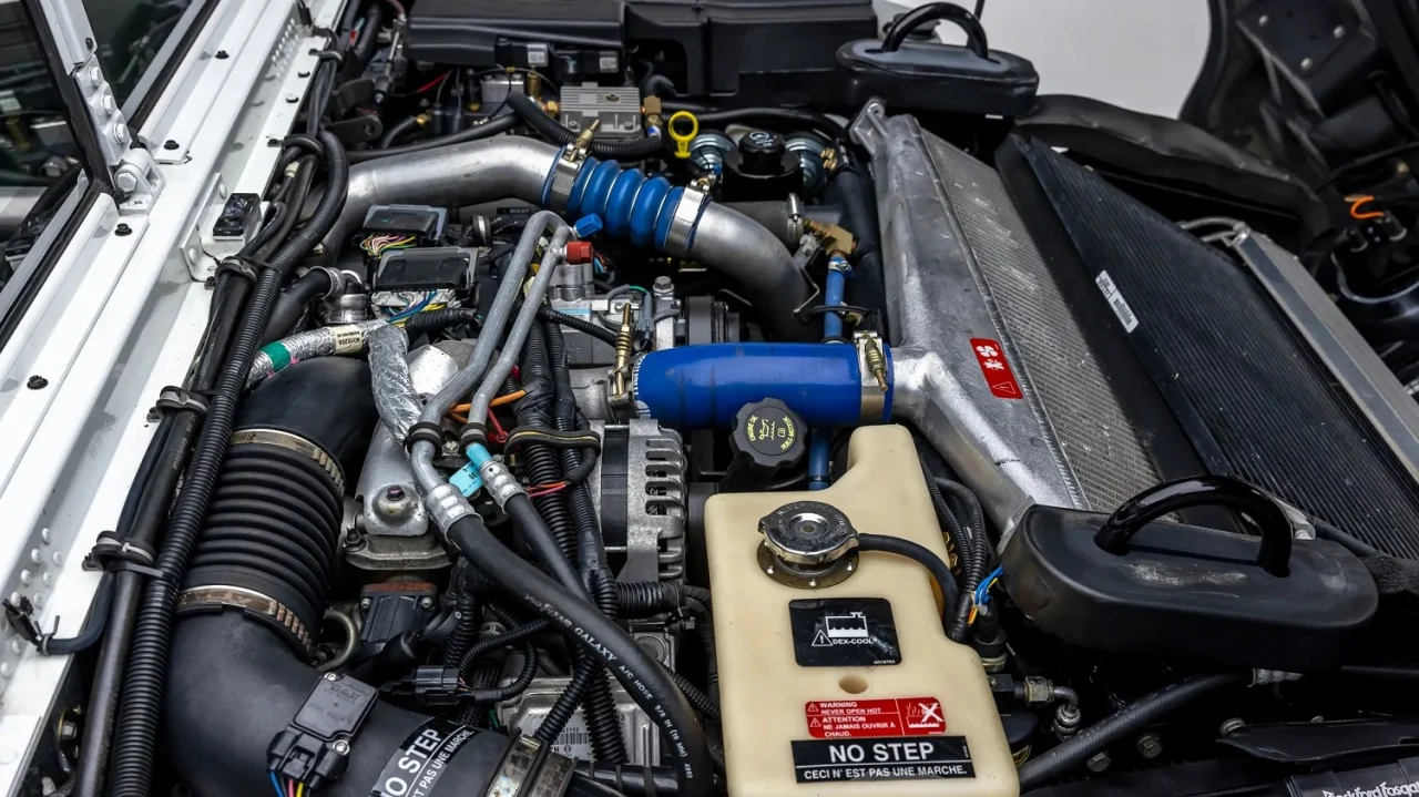 This particular Bright White H1 Alpha Open-Top Custom is even more capable thanks to the optional Adventure Package. This added a 12,000-pound front winch, front and rear Eaton electronic locking differentials, and 17-inch wheels with dual beadlocks to keep the 37-inch Goodyear Wrangler MT/Rs in place.